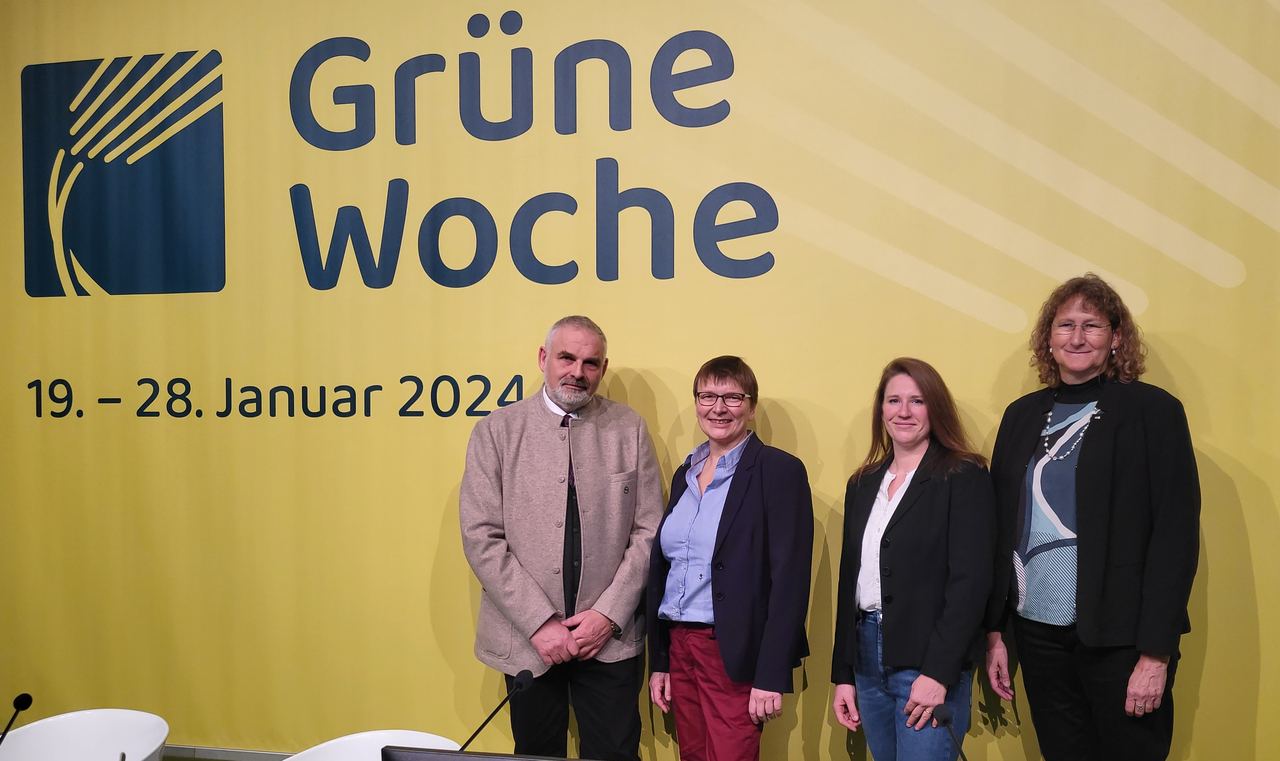 - Foto (v.l.n.r.): Ldt. VD Dr. Holger Vogel, Dr. Evelin Stampa, Laura Darracott und Dr. Christine Bothmann, © Bundestierärztekammer